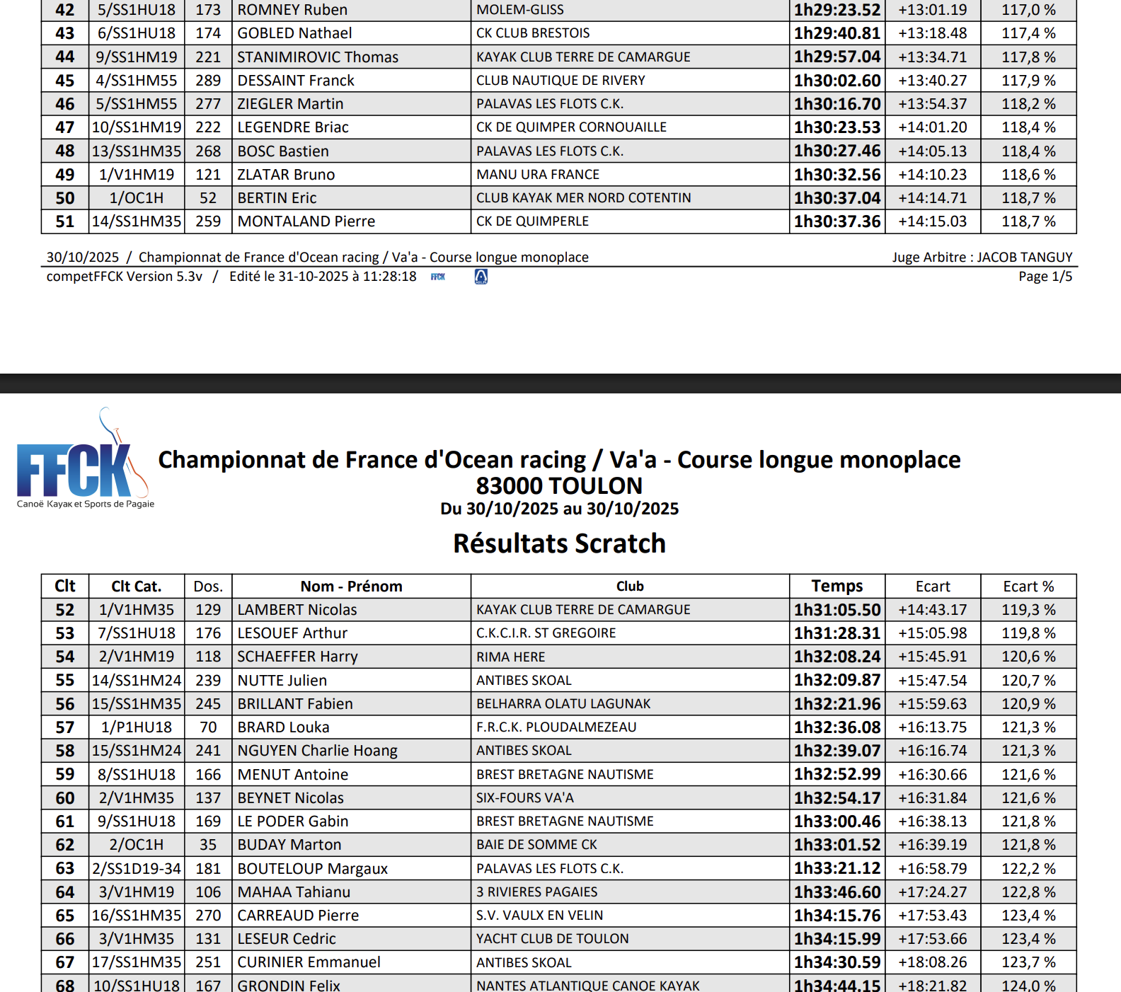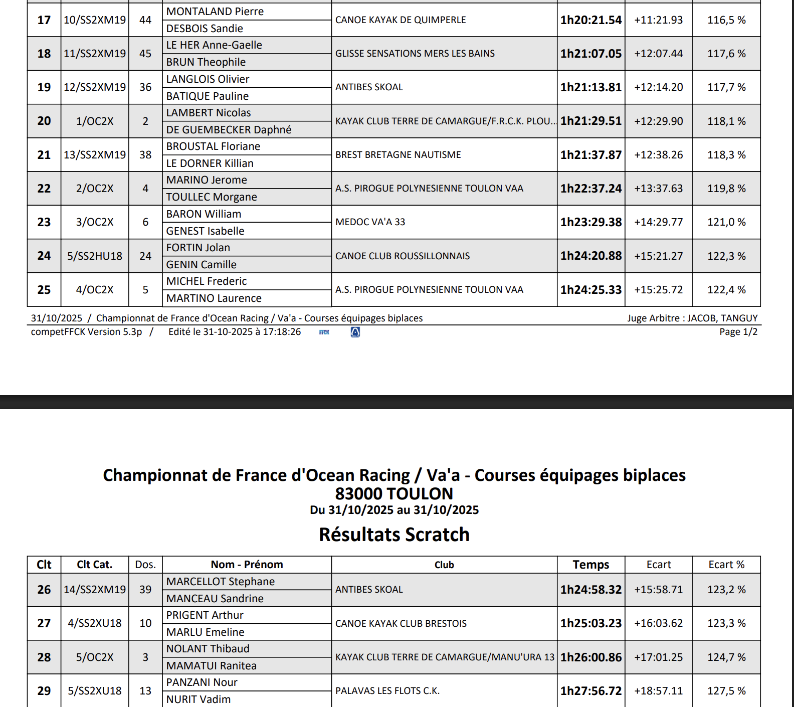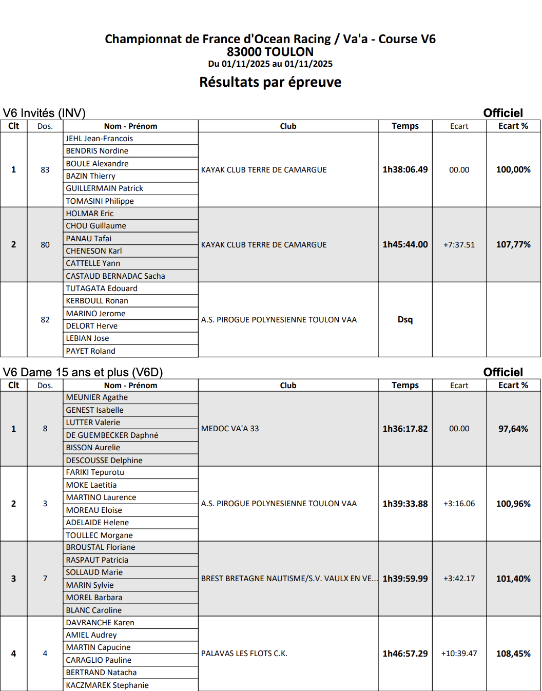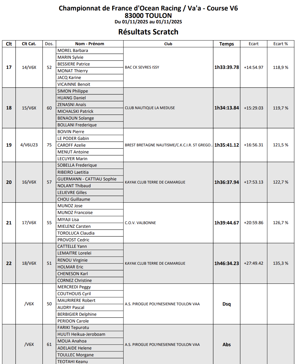 Le Championnat de France d’Ocean Racing 2025 s’est tenu à Toulon, sur la plage du Mourillon, du 29 octobre au 2 novembre. Cet événement majeur de la saison a rassemblé l’élite française de la rame océanique autour de conditions variées, mêlant vent, houle et stratégie. Au programme : des courses longues distances en monoplace et biplace, des formats courts plus explosifs, ainsi que les épreuves en équipage V6, offrant un spectacle complet et intense sur l’eau. Des jeunes aux vétérans, des catégories OC1, surfski et va’a, tous les rameurs se sont affrontés pour décrocher le titre national et clôturer la saison en beauté.
