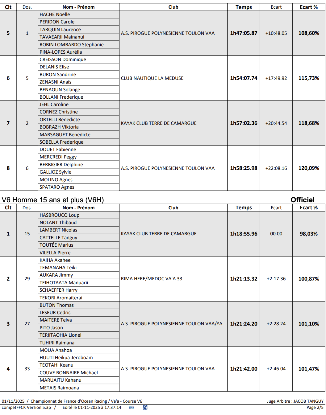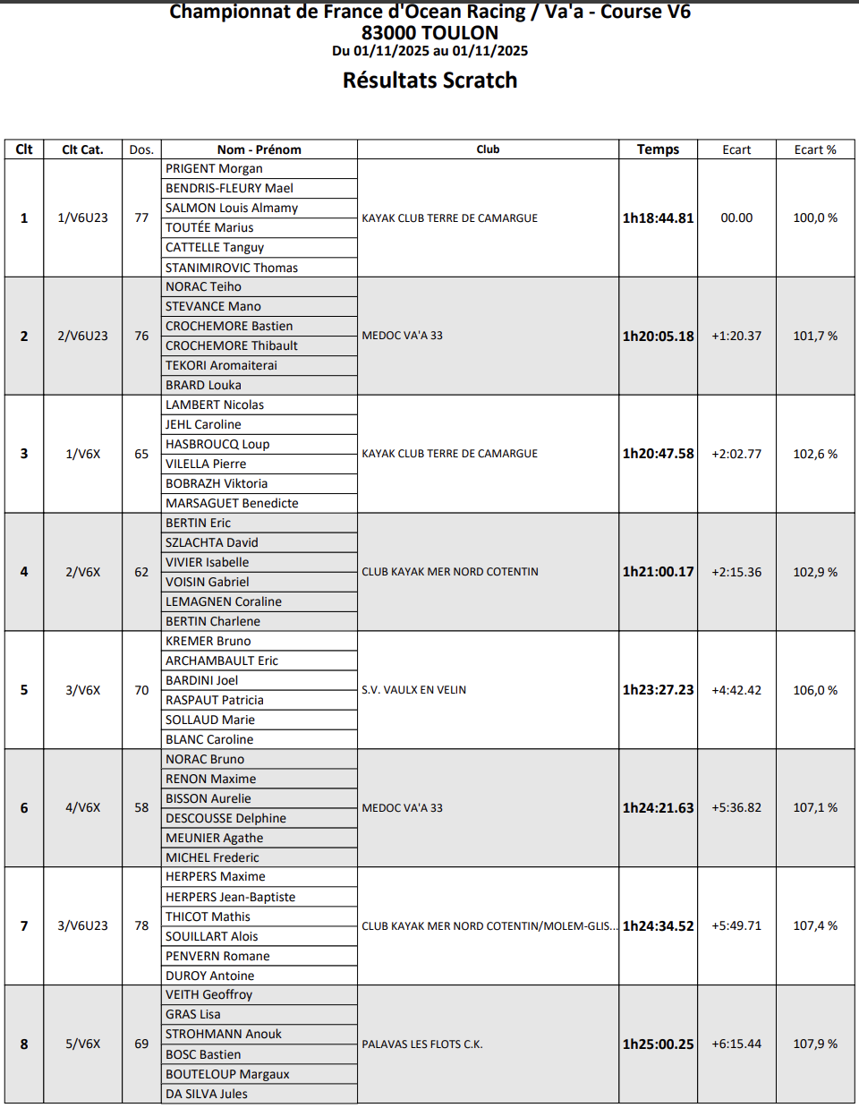 Après plusieurs jours de compétition les nouveaux champions de France d’Ocean Racing 2025 ont été sacrés. Entre les longues distances exigeantes, les formats courts disputés au sprint, et la cohésion des équipages en V6, chaque épreuve a offert son lot d’émotion et de performance.