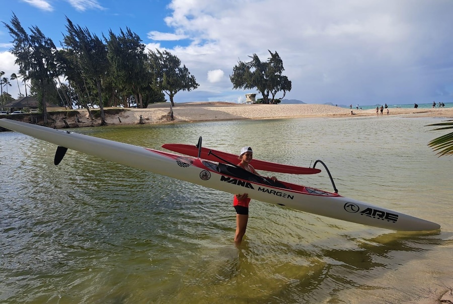 Iloha Eychenne lève le ama de son OC1 ARE Mana