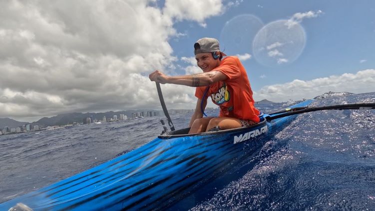 Mais par exemple, cette année, je me suis entraînée exclusivement en K1 tout le début de saison. De janvier jusqu’à deux semaines avant la Molokaï, je n’ai fait que du surfski. Toute ma préparation physique et technique a été faite sur ce support. Puis j’ai “jumpé” sur l’OC1 deux semaines avant la course. J’ai dû faire une seule descente — le Hawaii Kai Run — et sinon, je me suis entraînée sur des plans d’eau plats en OC1.