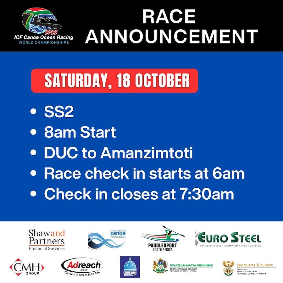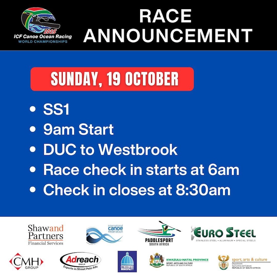As Durban prepares to host the world’s best ocean paddlers, the 2025 ICF Canoe Ocean Racing World Championships promise a weekend of speed, endurance, and spectacular downwind racing. With world titles on the line, unpredictable ocean conditions, and the sport’s biggest names in the mix, all eyes will be on the Durban coastline when the start guns fire this weekend.